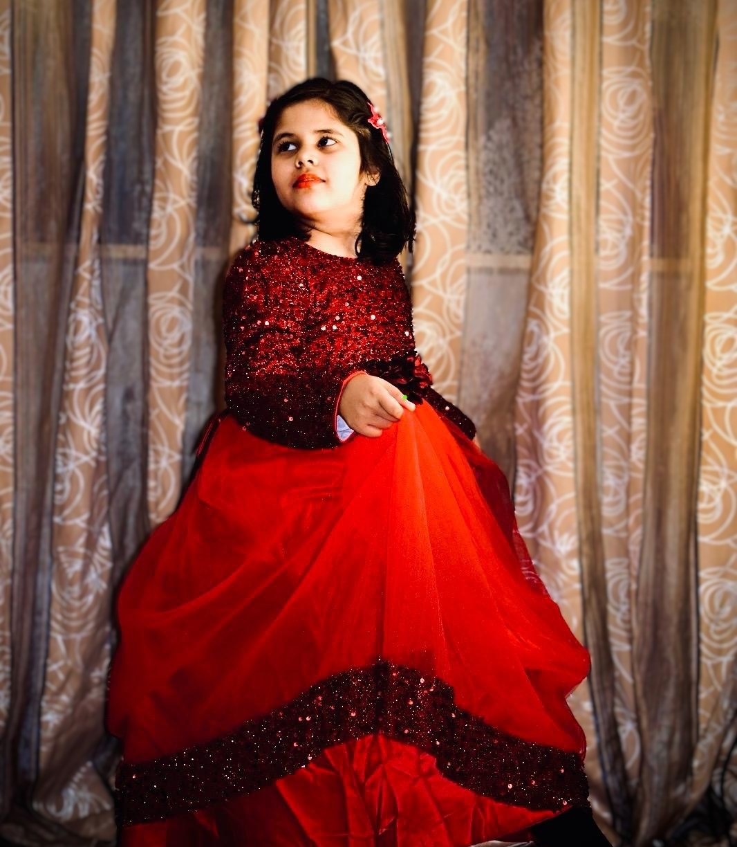 Little girl feels royal in her new dress. Style of a princess